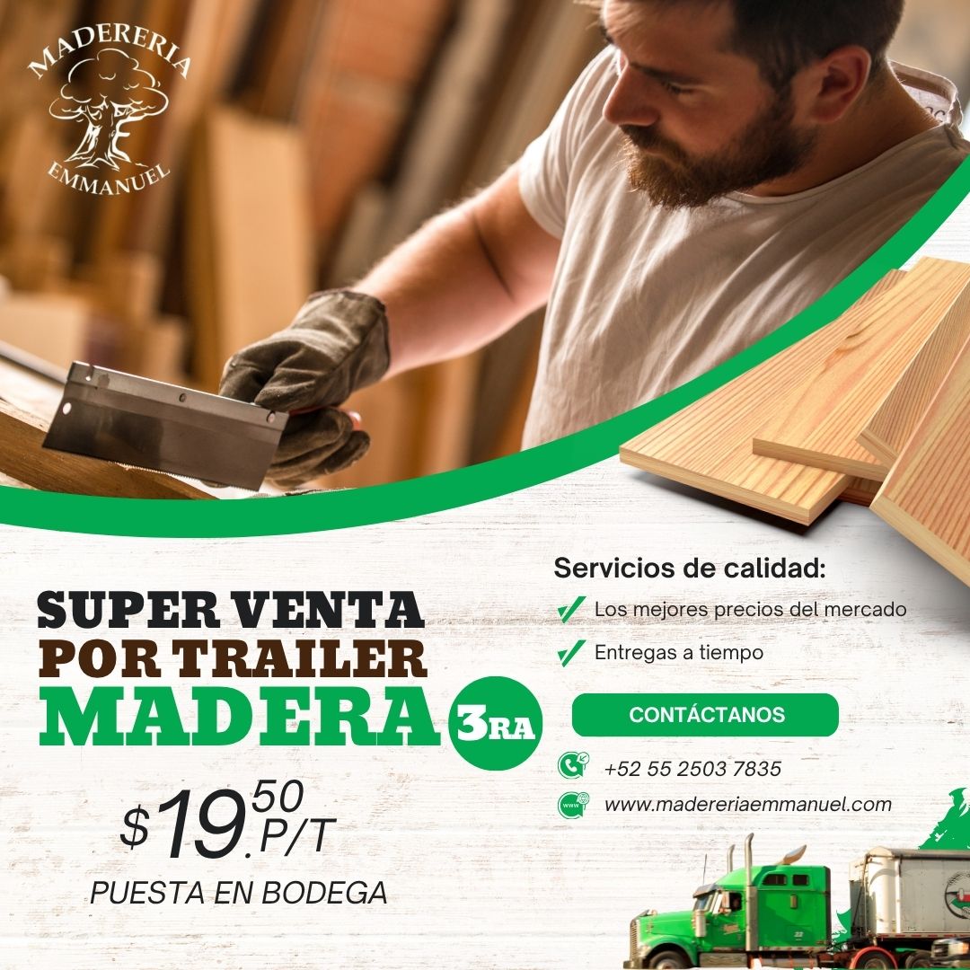 Maderería Emmanuel es una empresa 100% mexicana con más de 20 años de experiencia en mercado de la madera y sus derivados, ofrecemos un extenso surtido en maderas de diferentes tipos y clases para todos sus proyectos. Brindamos un servicio personalizado y contamos con la infraestructura y equipo de transporte necesario para surtir en tiempo y forma sus requerimientos; tenemos un amplio stock y múltiples productos y servicios para la transformación de la madera con precios exclusivos para mayoristas y carpinteros.
